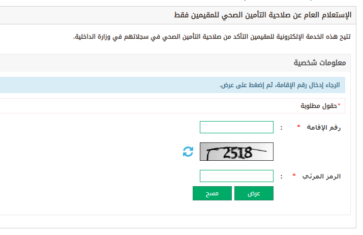 الاستعلام عن صلاحية التأمين الطبي برقم الاقامة أو رقم الهوية