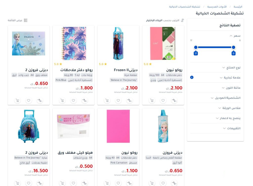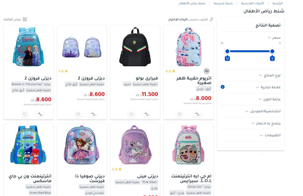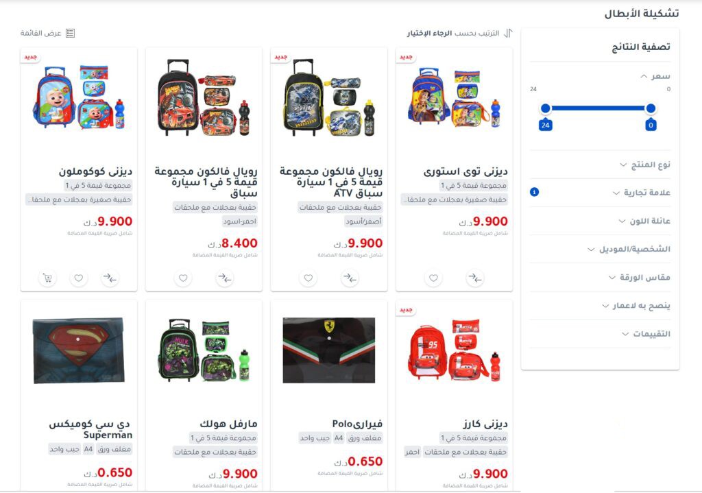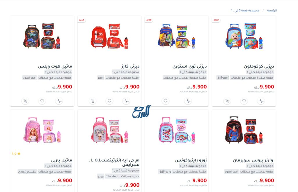مكتبة جرير في الكويت وفرت تشكيلة مميزة من حقائب الشخصيات الخيالية والتي تشكل (حقائب، ومقلمة، وزمزمية، وحافظات طعام، ودفاتر ملاحظات، وغيرها الكثير من المنتجات المميزة الذي يبدأ سعرها من 0.250 دينا كويتي، وحتى 16,500 دينار كويتي، ويمكن طلب المنتجات والاطلاع عليها “من هنا“.