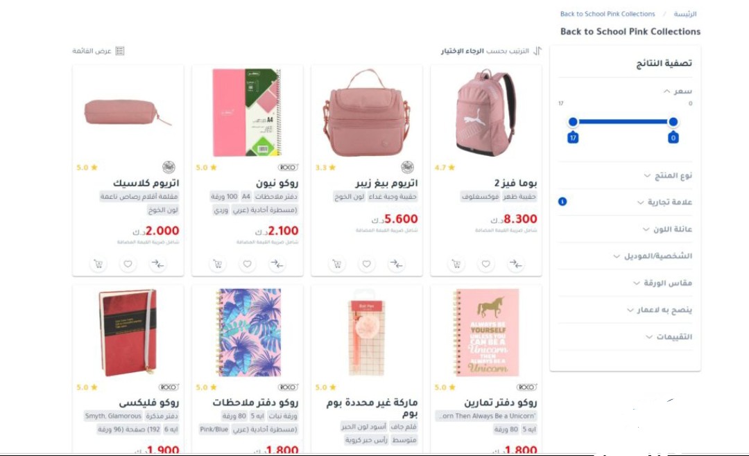 لعشاق اللون الوردي تقدم مكتبة جرير المشتملات المدرسية ذات اللون الوردي، من حقائب، ومقلمات، ودفاتر دراسية، وغيرها الكثير، ويبدأ سعر المنتجات في هذه الفئة من 0.350 دينار كويتي، ويمكن مطالعة المنتجات مباشرةً “من هنا“.