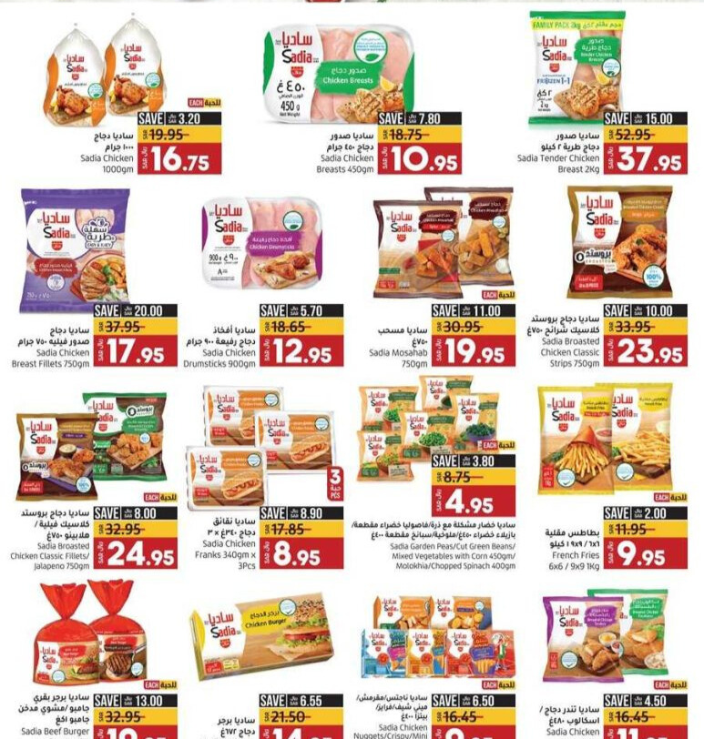 استمتعوا بتخفيضات على سعر نقانق دجاج والبروستيد الكلاسيكي للدجاج من ساديا Sadia، وتخفيضات أخرى على أسعار فيليه صدور الدجاج وأفخاد الدجاج الرفيعة من ساديا Sadia.