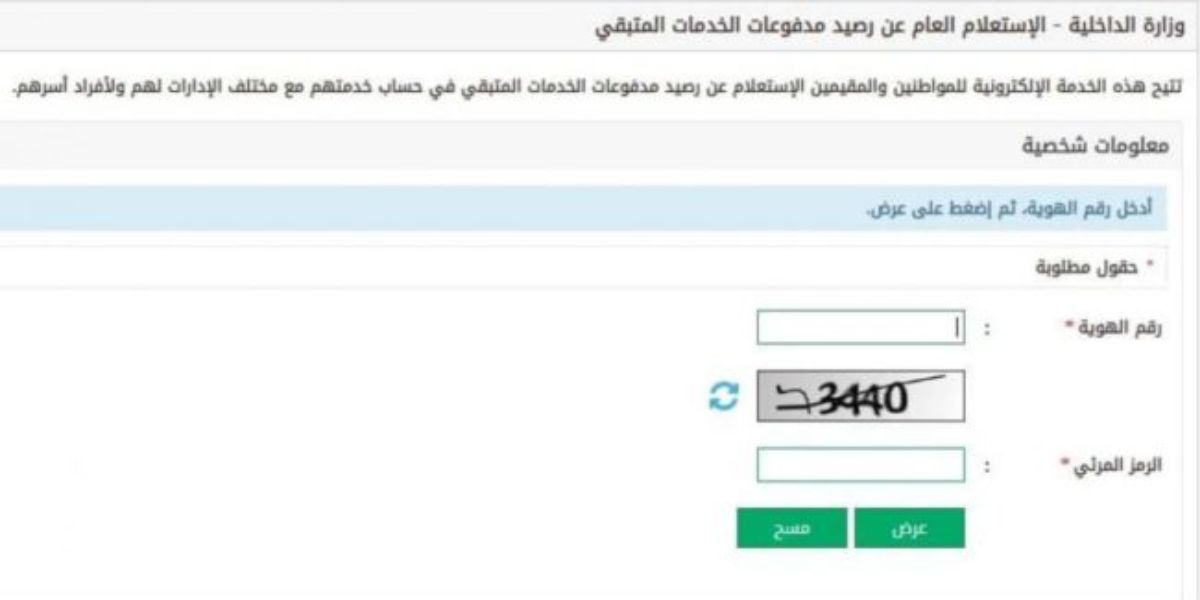 - بعدها ظهور ديوان وزارة الداخلية النققر على “الاستعلام العام عن رصيد مدفوعات الخدمات المتبقي”.