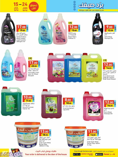 - عروض خاصة على قسم تنظيف المنزل الذي يشتمل على جميع منتجات تنظيف الأطباق، غسيل الملابس، العلاقات، المنظفات المطهرة، المناديل الورقية، ملطف الجو.