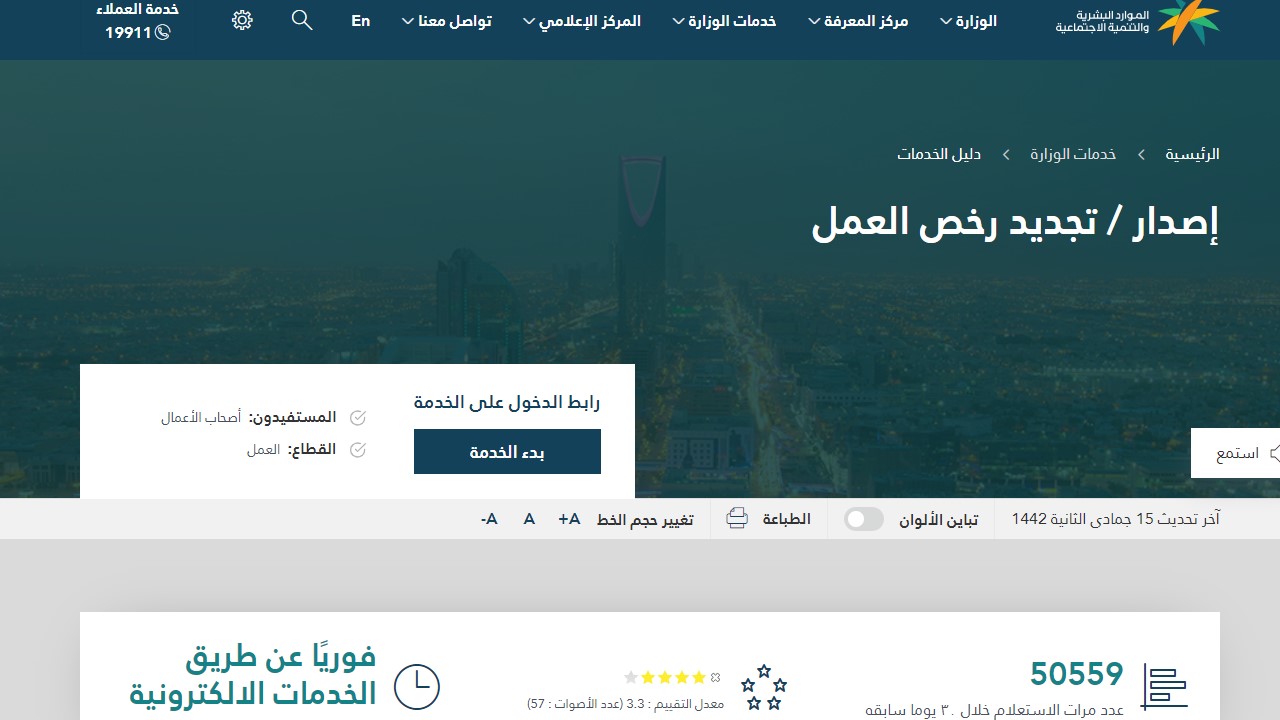 - اختيار خدمة إصدار أو تجديد رخص العمل.